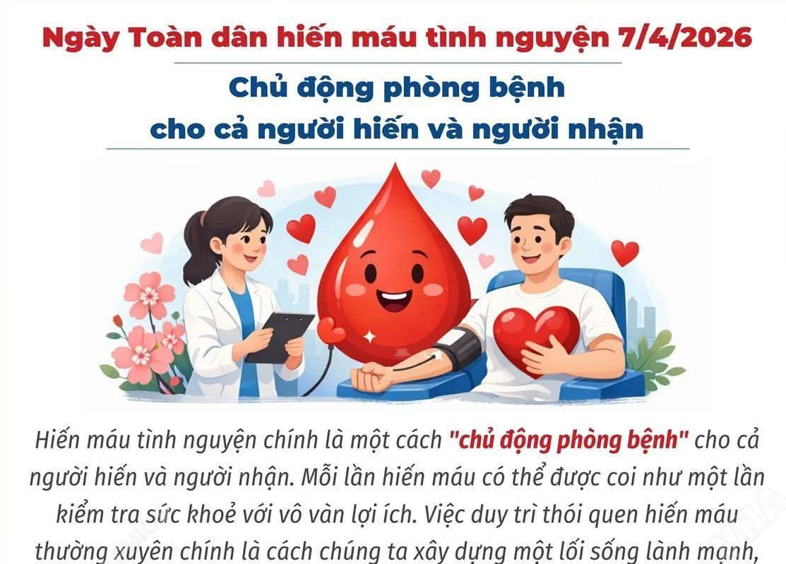 Năm 2026 đánh dấu tròn 26 năm Thủ tướng Chính phủ ký quyết định chọn ngày 7/4 là “Ngày Toàn dân hiến máu tình nguyện” (7/4/2000 – 7/4/2026). Đây không chỉ là một hoạt động thiện nguyện, mà còn là một phong trào có vai trò quan trọng trong việc chăm sóc và bảo vệ sức khỏe cộng đồng.