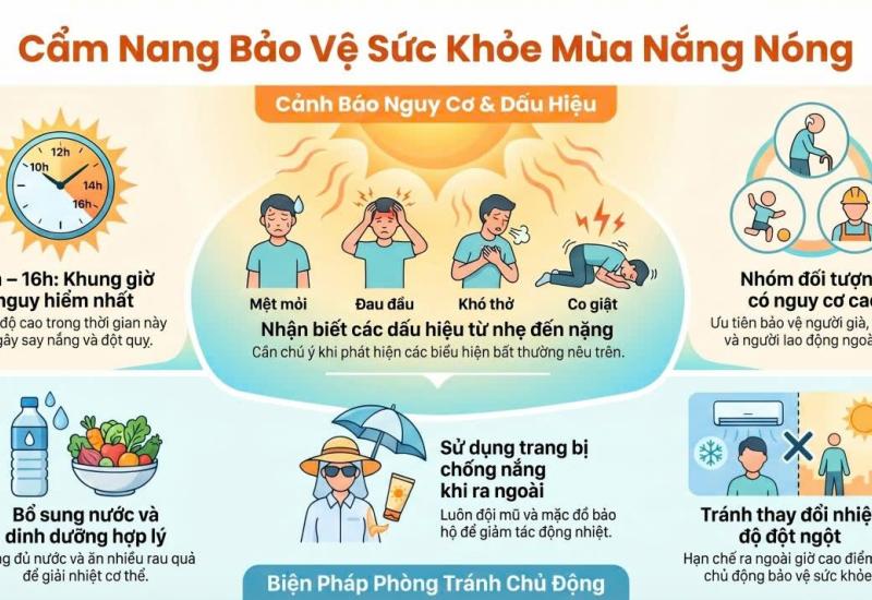 Hiện nay, thời tiết đang bước vào cao điểm nắng nóng, nhiệt độ tăng cao, ảnh hưởng trực tiếp đến sức khỏe, đặc biệt trong khung giờ từ 10h – 16h. Nắng nóng có thể kéo dài nhiều ngày tới.