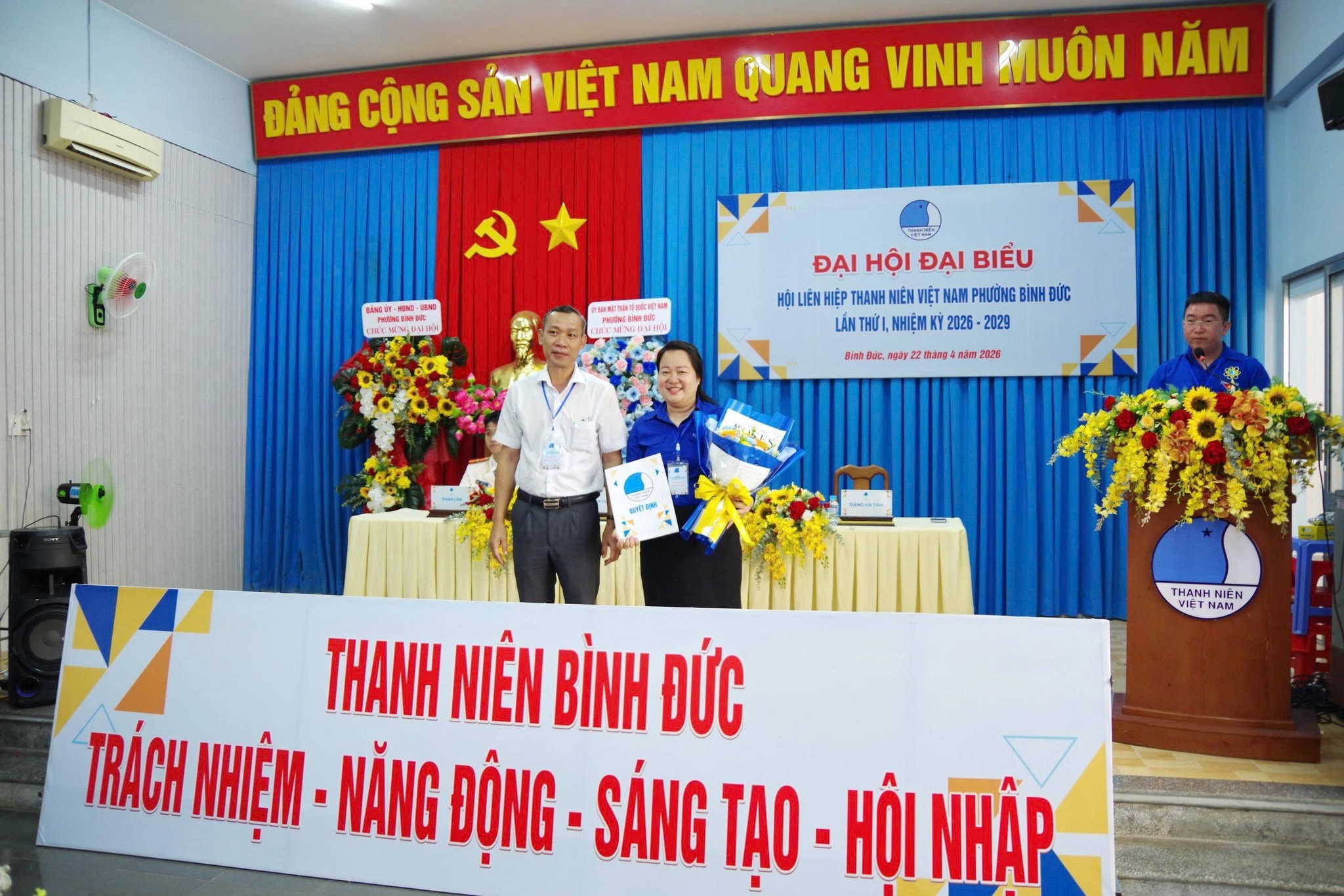 Sáng ngày 22/4, Ủy ban Liên hiệp Thanh niên Việt Nam phường Bình Đức tổ chức Đại hội đại biểu Hội Liên hiệp Thanh niên Việt Nam phường lần thứ I, nhiệm kỳ 2026 – 2029. Dự Đại hội có đồng chí Võ Thị Thủy Tiên, Phó Bí thư Thường trực Đảng ủy phường; đồng chí Võ Văn Hòa - Phó Bí thư Đảng ủy, Chủ tịch UBND phường.