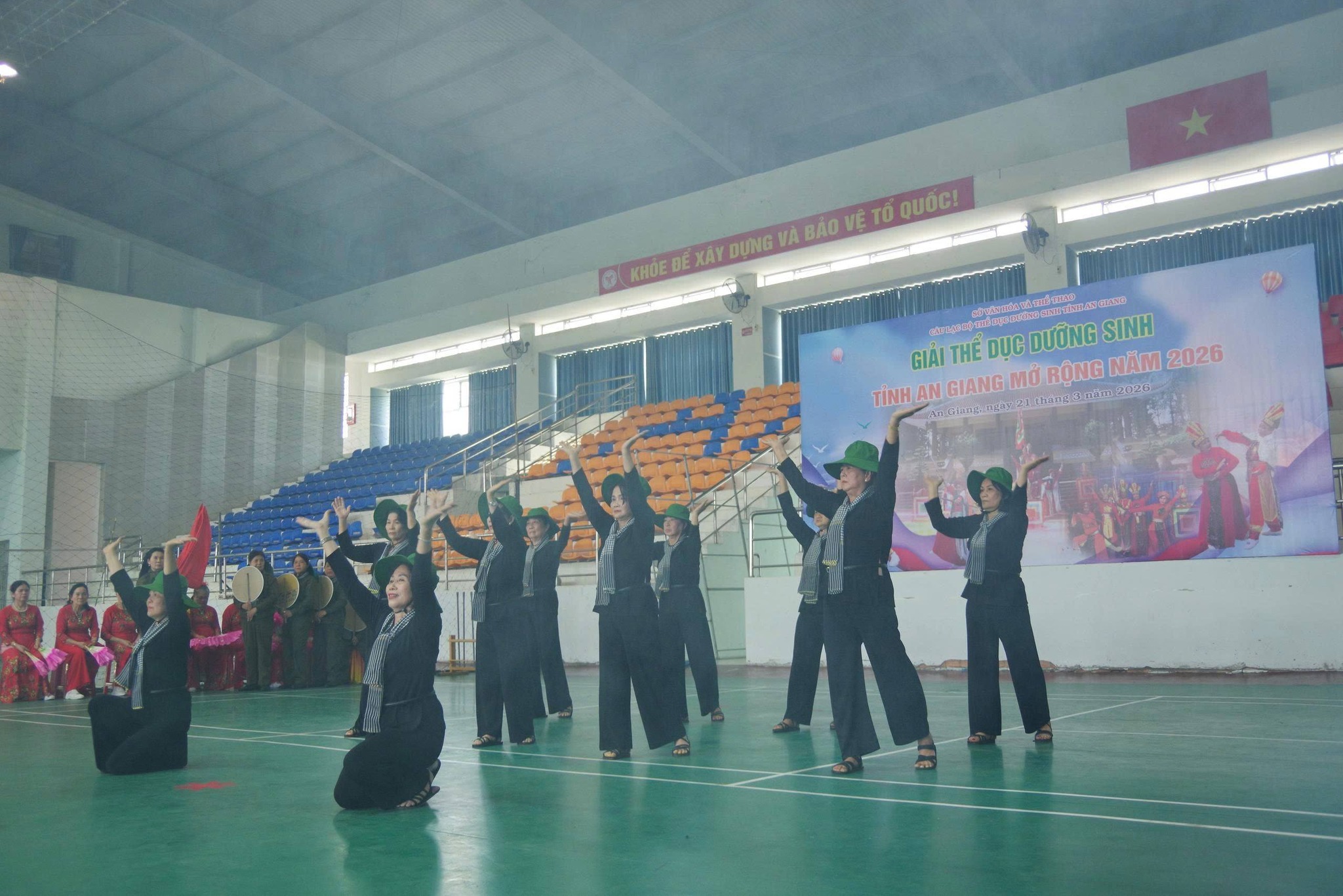 Tham dự giải thể dục dưỡng sinh tỉnh An Giang mở rộng năm 2026 có sự góp mặt của 18 Câu lạc bộ với gần 300 hội viên, đại diện cho các Câu lạc bộ Thể dục dưỡng sinh đến từ các tỉnh Vĩnh Long, Cần Thơ, Thành phố Hồ Chí Minh, Tây Ninh và các xã, phường trên địa bàn tỉnh An Giang. Các đội đã thi đấu ở 05 nội dung: Võ thuật có dụng cụ; Thể dục dưỡng sinh; Biểu diễn dưỡng sinh nghệ thuật; Thái cực quyền và Võ dưỡng sinh. Với nhiều động tác được thể hiện hết sức nhuần nhuyễn, linh hoạt, mềm mại, đẹp mắt đã tạo được sự say mê, thích thú cho người xem. Kết thúc giải, Ban tổ chức đã trao huy chương vàng và huy chương bạc cho các đội thi đấu có thành tích tốt.