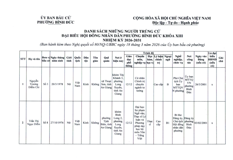 Nhằm thiết thực hướng tới kỷ niệm 80 năm ngày truyền thống ngành Thể thao Việt Nam (27/3/1946 – 27/3/2026). Sáng ngày 21/3, Câu lạc bộ Dưỡng sinh tỉnh An Giang phối hợp Trung tâm Dịch vụ Tổng hợp phường Bình Đức tổ chức Giải thể dục dưỡng sinh tỉnh An Giang mở rộng năm 2026. Đến dự có bà Bùi Thị Hồng Thủy, Phó trưởng Ban chuyên môn Hội đồng Thể dục dưỡng sinh Việt Nam. Ông Trần Minh Tân, Chủ tịch CLB Thể dục dưỡng sinh tỉnh An Giang. Ông Dương Kiếm Anh, Phó Chủ tịch UBND phường Bình Đức cùng tham dự.