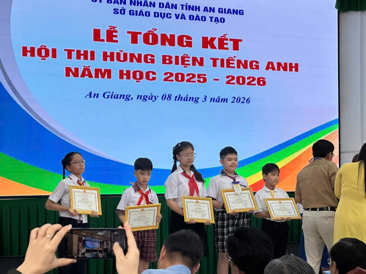 Ngày 08/3, Sở Giáo dục và Đào tạo tỉnh An Giang tổ chức bế mạc và trao giải Hội thi Hùng biện tiếng Anh dành cho học sinh tiểu học, THCS và THPT năm học 2025 – 2026. Hội thi là sân chơi trí tuệ, tạo cơ hội cho học sinh trên địa bàn tỉnh thể hiện khả năng sử dụng tiếng Anh, rèn luyện kỹ năng giao tiếp và phát triển tư duy hội nhập.