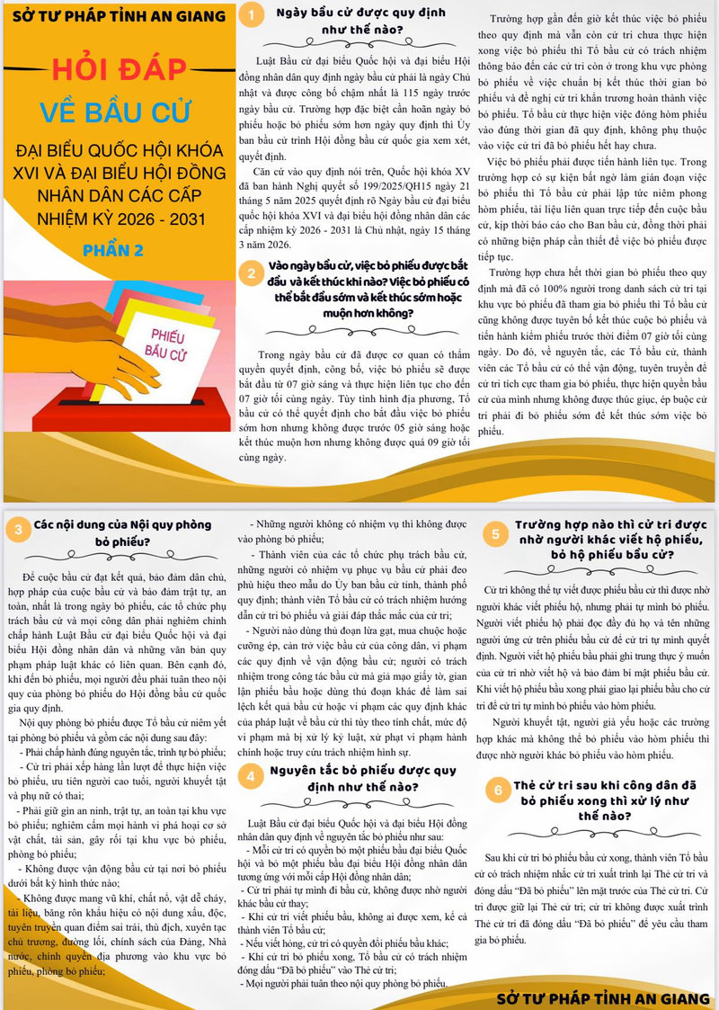 aA Kinh tế - Xã hội HỎI ĐÁP VỀ BẦU CỬ- ĐẠI BIỂU QUỐC HỘI KHÓA XVI VÀ ĐẠI BIỂU HỘI ĐỒNG NHÂN DÂN CÁC CẤP NHIỆM KỲ 2026-2031 12/03/2026, 07:00 SỞ TƯ PHÁP TỈNH AN GIANG Quay về Chia sẻ Copy link thành công Tin khác "RẠP PHIM THANH NIÊN" KẾT HỢP MÔ HÌNH "TẠP HÓA THANH NIÊN" Kinh tế - Xã hội Văn hóa 28/04/2026 RA QUÂN VỆ SINH MÔI TRƯỜNG NHÂN KỶ NIỆM 51 NĂM NGÀY GIẢI PHÓNG MIỀN NAM, THỐNG NHẤT ĐẤT NƯỚC VÀ 136 NĂM NGÀY SINH CHỦ TỊCH HỒ CHÍ MINH Giáo dục Kinh tế - Xã hội Văn hóa 25/04/2026 SỞ GIÁO DỤC VÀ ĐÀO TẠO TỈNH AN GIANG LÀM VIỆC VỚI BAN THƯỜNG VỤ ĐẢNG ỦY PHƯỜNG, UBND PHƯỜNG BÌNH ĐỨC VỀ CÔNG TÁC GIÁO DỤC VÀ ĐÀO TẠO Giáo dục Kinh tế - Xã hội 23/04/2026 PHƯỜNG BÌNH ĐỨC TỔ CHỨC LẤY Ý KIẾN CỘNG ĐỒNG DÂN CƯ QUY HOẠCH CHUNG ĐÔ THỊ LONG XUYÊN ĐẾN NĂM 2050 Kinh tế - Xã hội 23/04/2026 THÔNG BÁO RA QUÂN VỆ SINH MÔI TRƯỜNG PHƯỜNG BÌNH ĐỨC Kinh tế - Xã hội Văn hóa 23/04/2026 ĐẠI HỘI ĐẠI BIỂU HỘI LHTN VIỆT NAM PHƯỜNG BÌNH ĐỨC LẦN THỨ I, NHIỆM KỲ 2026 – 2029 Kinh tế - Xã hội Văn hóa 22/04/2026 HƯỞNG ỨNG NGÀY SÁNG TẠO VÀ ĐỔI MỚI SÁNG TẠO THẾ GIỚI 21/4 NĂM 2026 Kinh tế - Xã hội Văn hóa 21/04/2026 BẾ MẠC ĐẠI HỘI THỂ DỤC THỂ THAO PHƯỜNG BÌNH ĐỨC Kinh tế - Xã hội Văn hóa 20/04/2026 HỘI THI TUYÊN TRUYỀN VIÊN GIỎI NĂM 2026 Kinh tế - Xã hội Văn hóa 20/04/2026 KHAI MẠC ĐẠI HỘI THỂ DỤC THỂ THAO PHƯỜNG BÌNH ĐỨC LẦN THỨ I Kinh tế - Xã hội Văn hóa 18/04/2026 /hoi-dap-ve-bau-cu-dai-bieu-quoc-hoi-khoa-xvi-va-dai-bieu-hoi-dong-nhan-dan-cac-cap-nhiem-ky-2026-2031