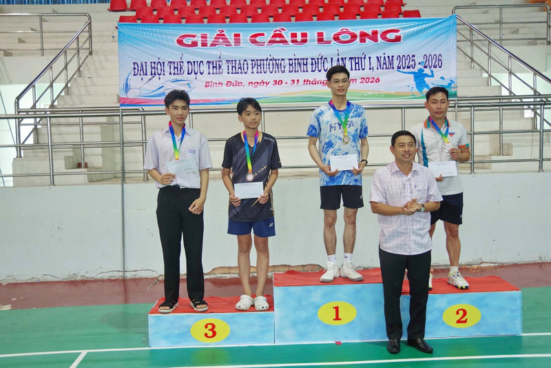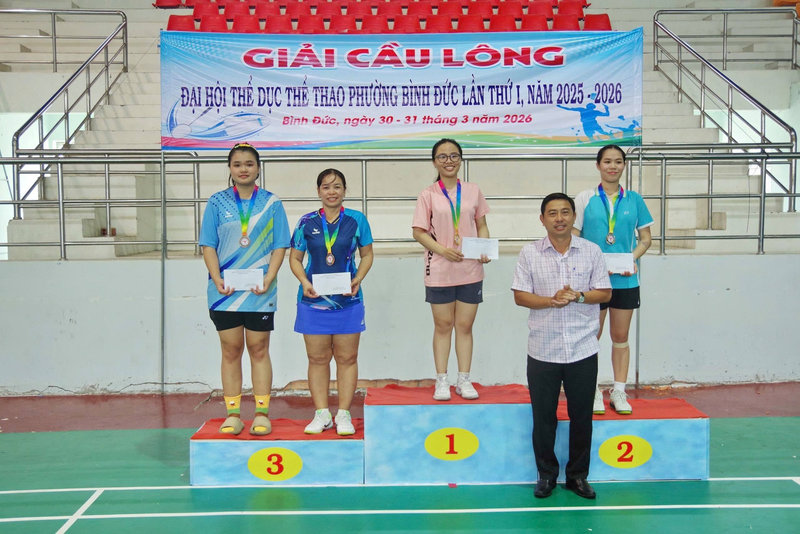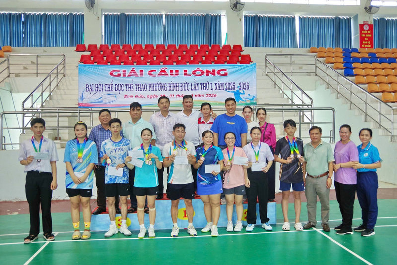 Trong khuôn khổ Đại hội Thể dục Thể thao phường Bình Đức lần thứ I, giai đoạn 2025 – 2026, trong 2 ngày 30 và 31/3, Ủy ban nhân dân phường Bình Đức tổ chức Giải cầu lông với sự tham gia của đông đảo vận động viên đến từ các đơn vị trên địa bàn. Tham dự giải có ông Võ Văn Trí, Phó Giám đốc Trung tâm Dịch vụ tổng hợp phường, Phó Trưởng Ban Đại hội Thể dục Thể thao phường.