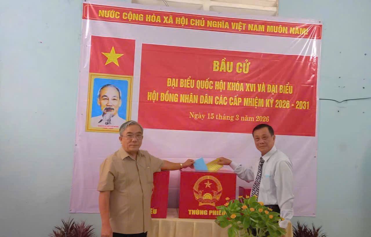 Sáng ngày 15/3, các đồng chí lãnh đạo tỉnh và phường Bình Đức đã tham gia bỏ phiếu cùng cử tri trên địa bàn, thực hiện quyền và nghĩa vụ công dân trong Ngày hội toàn dân đi bầu cử đại biểu Quốc hội khóa XVI và đại biểu Hội đồng nhân dân các cấp nhiệm kỳ 2026 – 2031./.