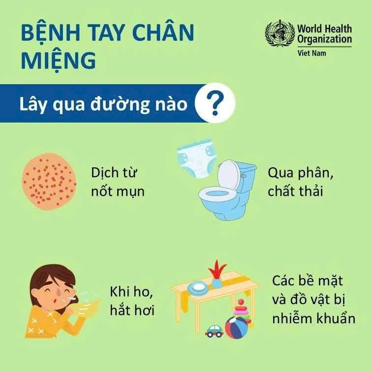 Bệnh tay chân miệng là bệnh truyền nhiễm thường gặp ở trẻ nhỏ, lây qua dịch từ nốt mụn, phân, đường hô hấp và các bề mặt, đồ vật nhiễm khuẩn.