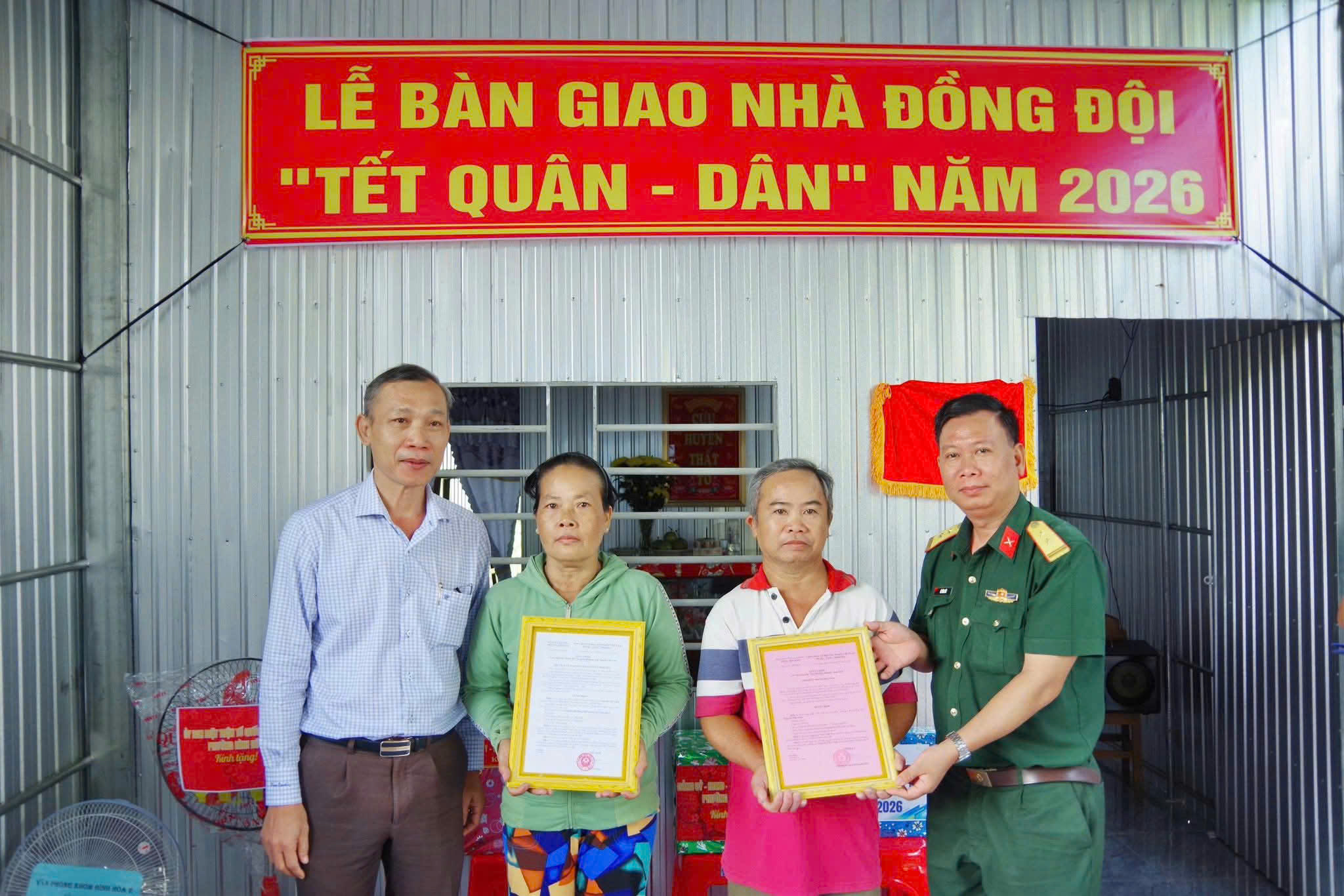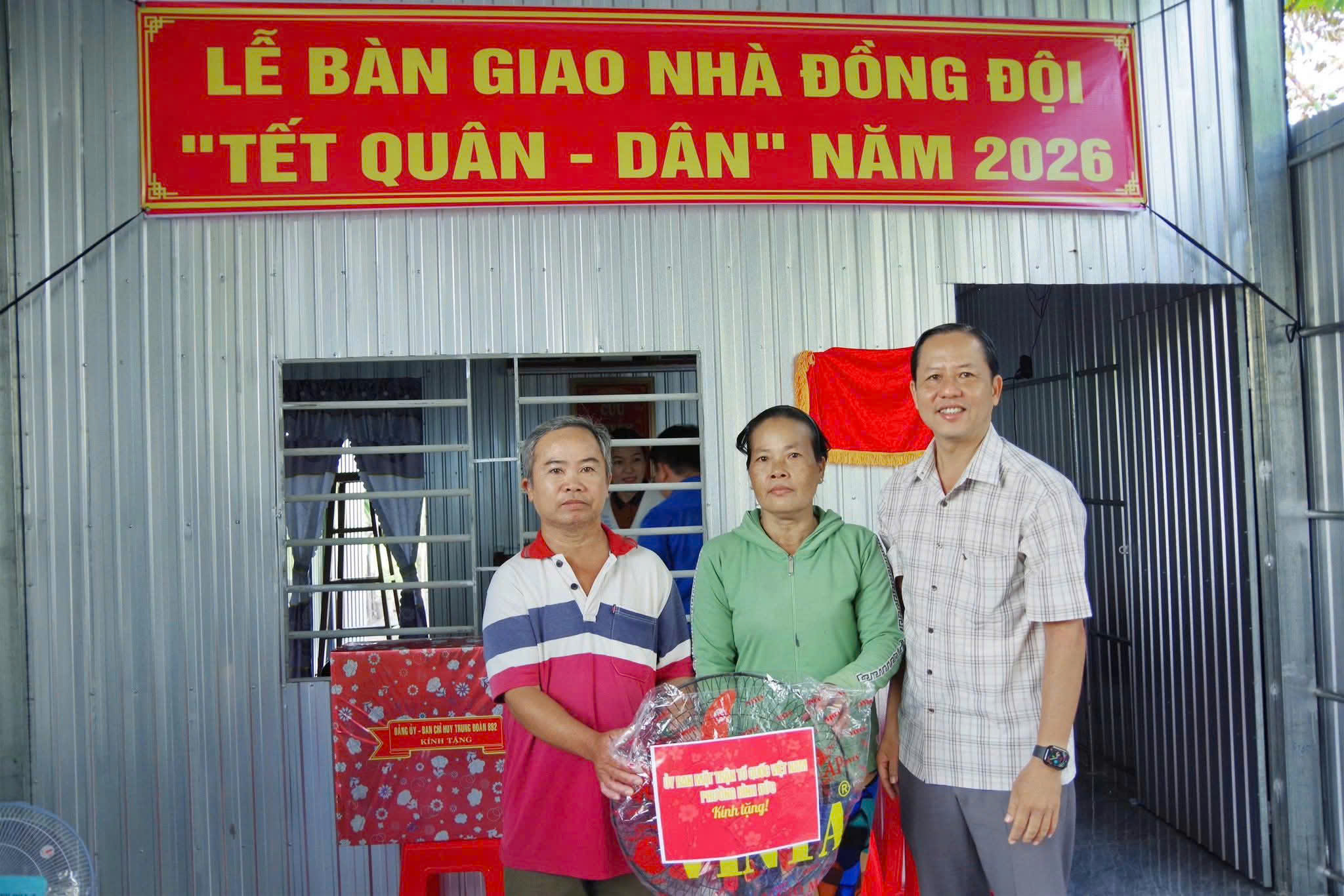 Dịp này, chính quyền địa phương, Trung đoàn Bộ binh 892 cũng trao tặng nhiều phần quà chúc mừng gia đình có được căn nhà mới. Đây là hoạt động thiết thực trong chuỗi chương trình Tết Quân – Dân năm 2026, thể hiện sự quan tâm, chăm lo của cấp ủy, chính quyền và các đơn vị lực lượng vũ trang đối với quân nhân có hoàn cảnh khó khăn, góp phần thắt chặt tình đoàn kết, nghĩa tình quân – dân trên địa bàn.