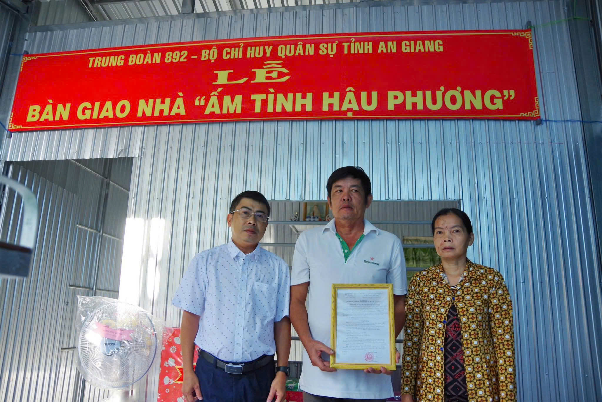 Căn nhà được bàn giao có diện tích 32m2, loại nhà cấp 4. Kết cấu khung thép, cuốn nền lót gạch men, vách mái lợp tole, khung tiền chế. Tổng kinh phí xây dựng là 102.000.000đ. Trong đó, Trung đoàn Bộ binh 892 hỗ trợ 45.000.000đ, Câu lạc bộ Pickleball 368 hỗ trợ 27.000.000đ, nhóm thiện nguyện Long Xuyên hỗ trợ 20.000.000đ, phần còn lại do gia đình đóng góp.