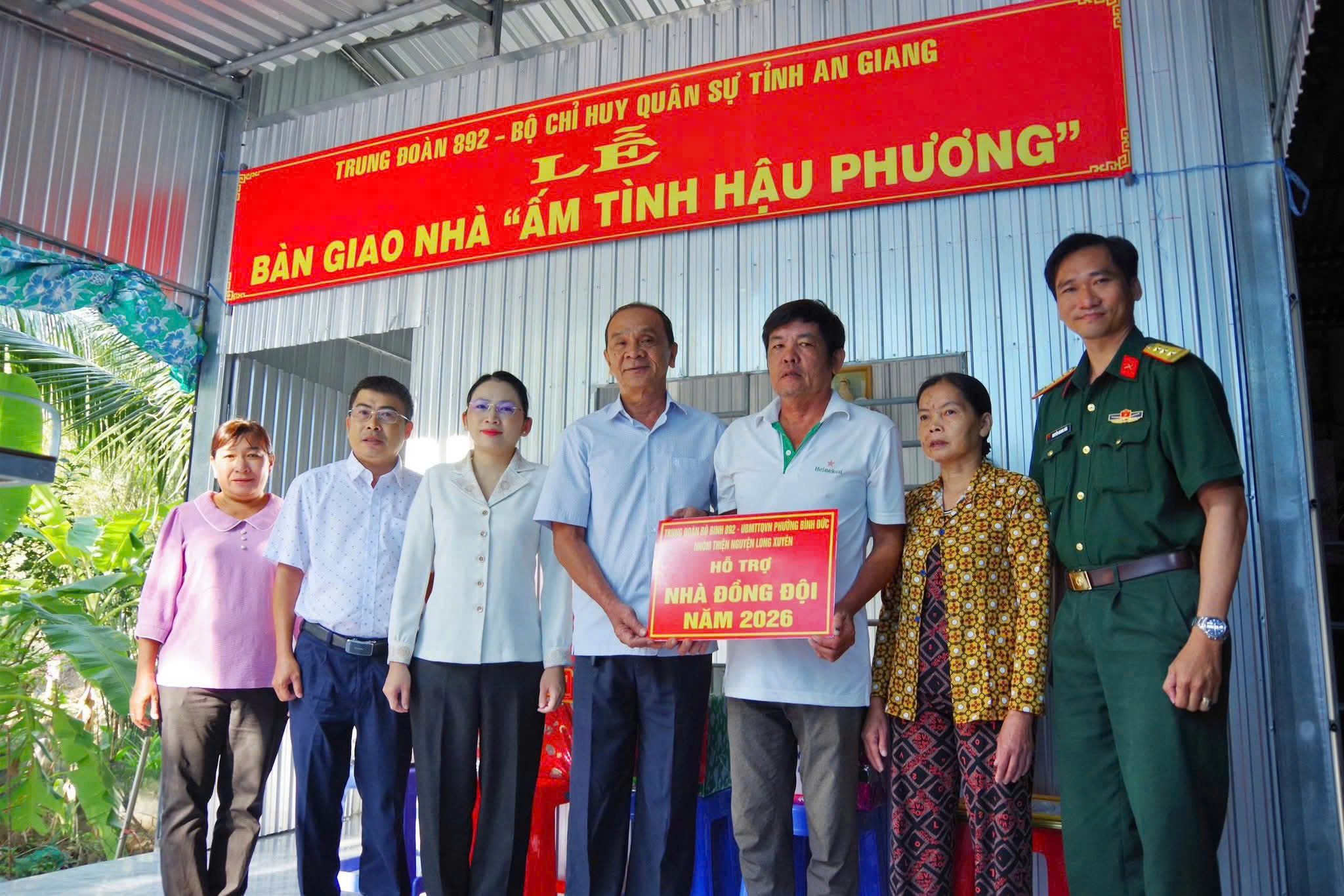 Sáng ngày 09/01, Ủy ban nhân dân phường Bình Đức phối hợp Trung đoàn Bộ binh 892 tổ chức lễ bàn giao nhà đồng đội cho quân nhân tại ngũ Trần Thanh Quốc, ngụ tại tổ 9, khóm Bình Khánh, phường Bình Đức, tỉnh An Giang.. Đến dự lễ bàn giao, về phía chính quyền địa phương có bà Võ Thị Thủy Tiên, Phó bí thư Thường trực Đảng ủy phường Bình Đức, ông Dương Kiếm Anh, Phó chủ tịch UBND phường, đại diện Mạnh thường quân nhóm thiện nguyện Long Xuyên ông Lê Thành Mẫn. Về phía Trung đoàn Bộ binh 892 có đồng chí Thượng tá Nguyễn Phương Hòa, Chính ủy Trung đoàn 892 đã đến dự.