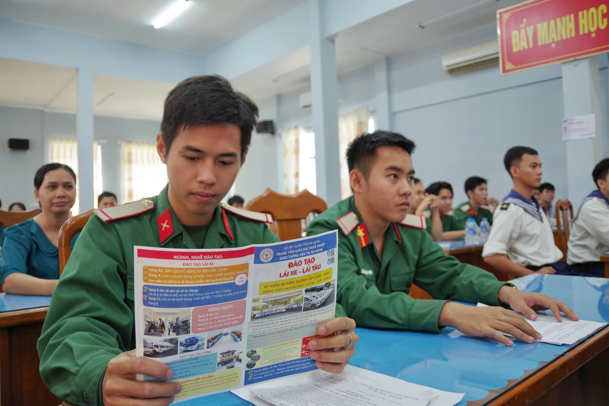 Dịp này, Trung tâm Giáo dục nghề nghiệp Khai Trí và Trung tâm Giáo dục nghề nghiệp Giao thông vận tải tỉnh An Giang tổ chức tư vấn, định hướng nghề nghiệp cho các quân nhân xuất ngũ năm 2026, góp phần hỗ trợ các quân nhân sớm ổn định cuộc sống và tìm kiếm việc làm sau khi hoàn thành nghĩa vụ quân sự./.