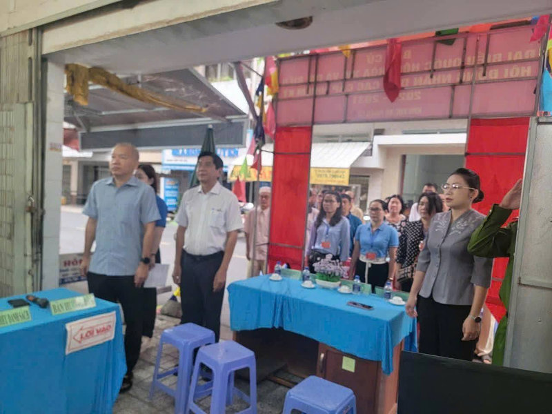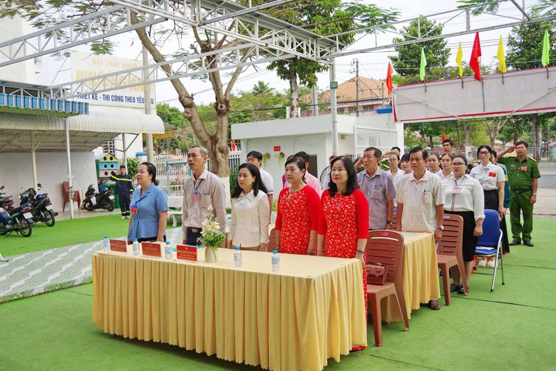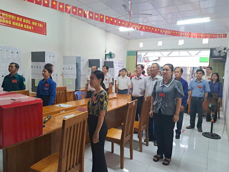 Đúng 6 giờ 30 phút sáng, Lễ khai mạc được tiến hành trang trọng, bài Quốc ca vang lên trong không khí nghiêm trang, tất cả đại biểu và cử tri có mặt đều hướng về Quốc kỳ, thể hiện tinh thần trách nhiệm và niềm tự hào của người công dân trong ngày hội lớn của toàn dân.