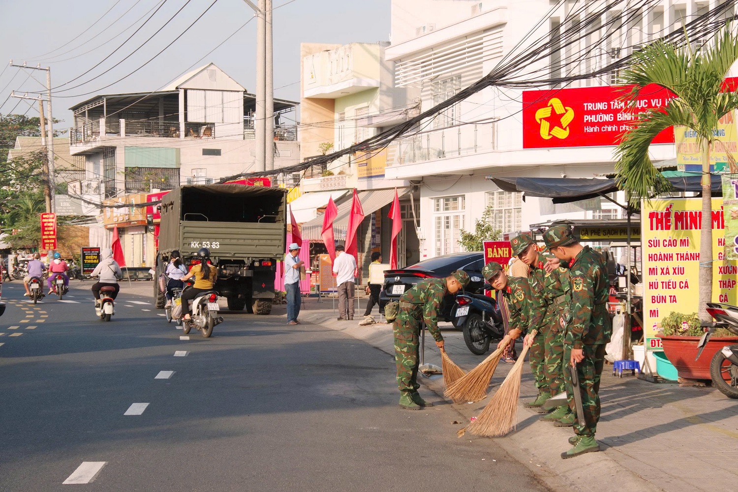Tham gia buổi ra quân có đông đảo cán bộ, chiến sĩ Lữ đoàn Pháo binh 6, Lữ đoàn 962, lực lượng địa phương và Nhân dân phường. Theo đó, các lực lượng đã tích cực tham gia dọn dẹp vệ sinh, phát quang bụi rậm, thu gom rác thải, làm sạch khuôn viên Nhà bia ghi danh các Anh hùng Liệt sĩ và Khu di tích Mỹ Khánh. Đồng thời, công tác vệ sinh, thu gom rác dọc tuyến đường Hàm Nghi cũng được thực hiện đồng bộ, nâng cao ý thức giữ gìn vệ sinh môi trường trong Nhân dân.