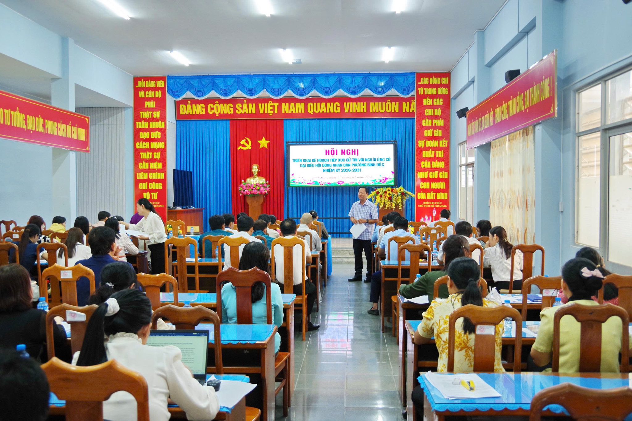 Thông qua hội nghị nhằm tạo điều kiện để các ứng cử viên thực hiện quyền vận động bầu cử theo quy định của pháp luật; đồng thời giúp cử tri nắm bắt chương trình hành động, lựa chọn những đại biểu tiêu biểu, đủ đức, đủ tài tham gia vào Hội đồng nhân dân phường nhiệm kỳ 2026 – 2031.