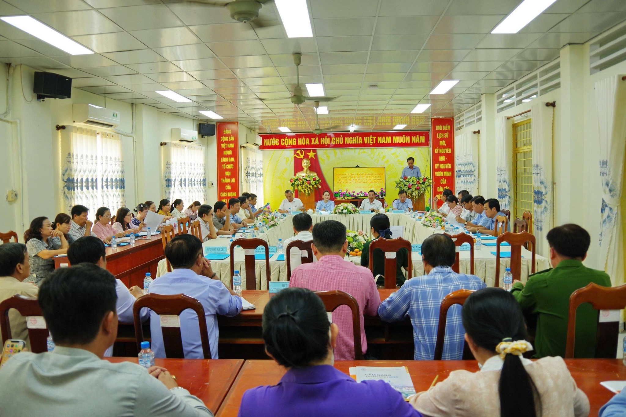 Kết luận buổi làm việc, ông Trần Quang Bảo, Giám đốc Sở Giáo dục và Đào tạo tỉnh đề nghị địa phương tiếp tục triển khai đồng bộ các giải pháp nâng cao chất lượng dạy và học; đẩy mạnh tuyên truyền, vận động học sinh đến trường; chủ động xây dựng kế hoạch đề xuất bổ sung biên chế phù hợp với nhu cầu thực tế. Bên cạnh đó, cần tăng cường chuyển đổi số, ứng dụng công nghệ thông tin trong quản lý và giảng dạy nhằm nâng cao hiệu quả giáo dục, đáp ứng yêu cầu đổi mới. Đồng thời, thành lập tổ tham mưu để phối hợp triển khai hiệu quả các nhiệm vụ giáo dục trên địa bàn trong thời gian tới...