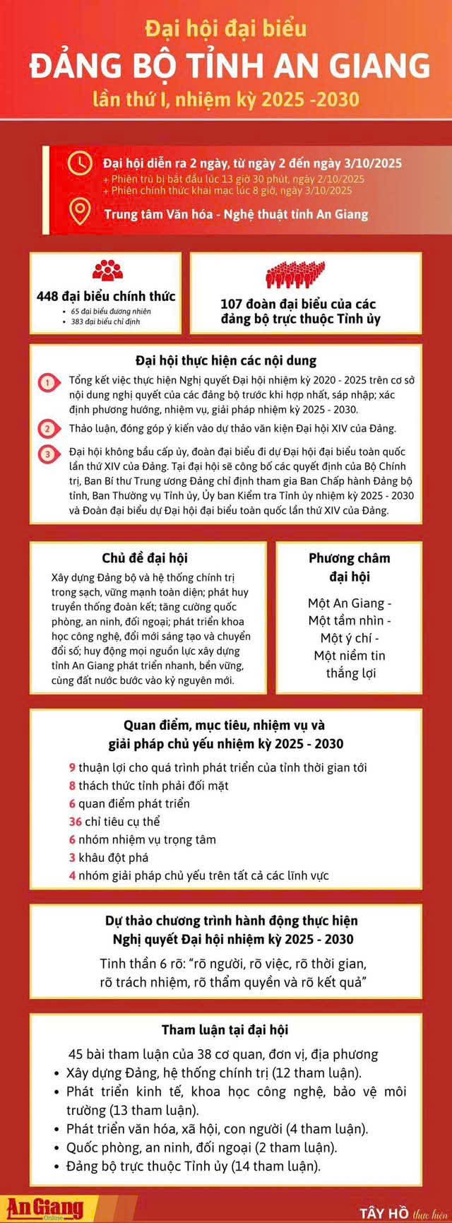 Thời gian, địa điểm, nội dung Đại hội đại biểu Đảng bộ tỉnh An Giang lần thứ I, nhiệm kỳ 2025 - 2030