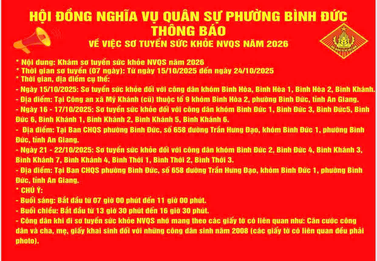 THÔNG BÁO - VỀ VIỆC SƠ TUYỂN SỨC KHOẺ NVQS 2026
