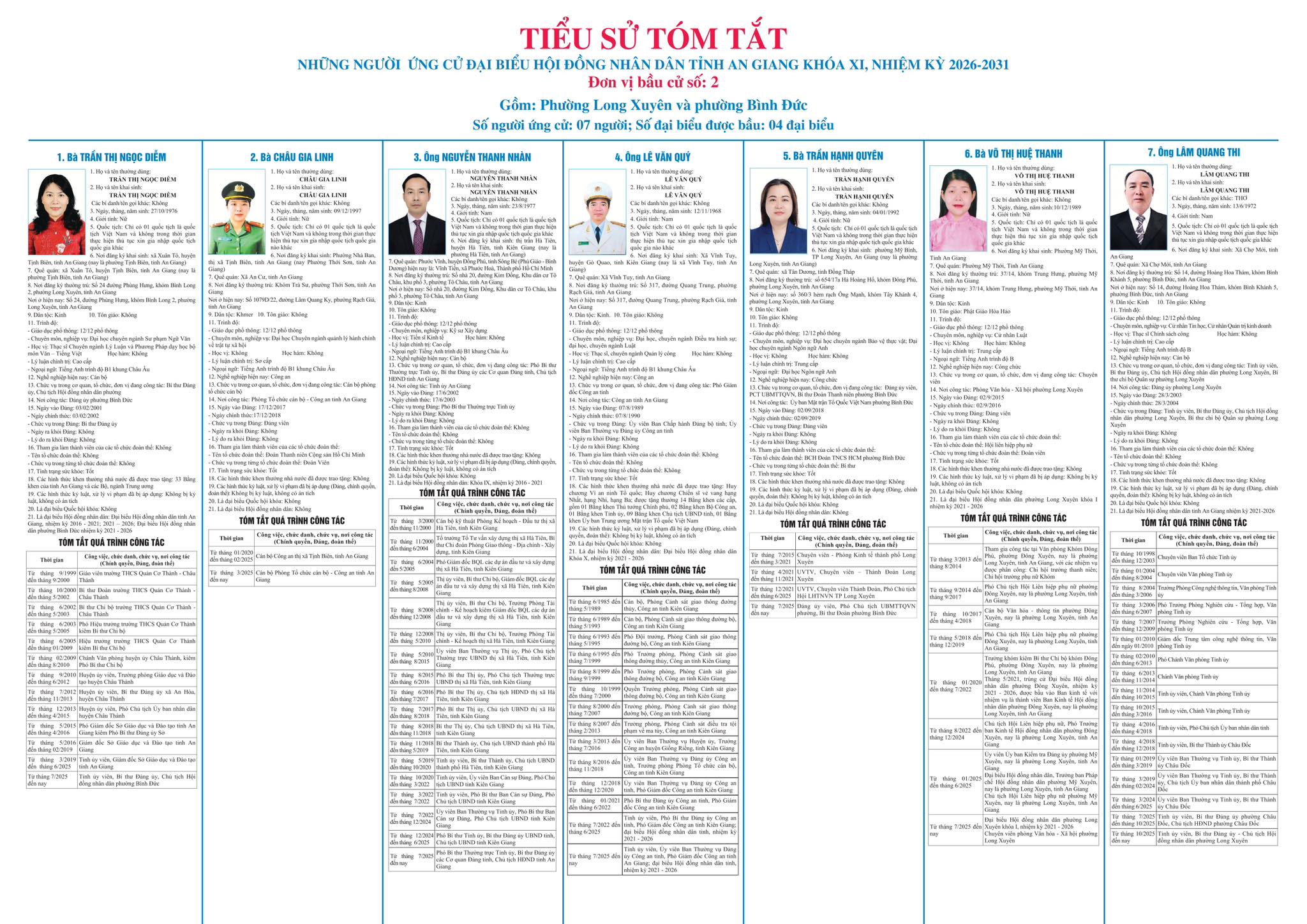 TIỂU SỬ TÓM TẮT NHỮNG NGƯỜI ỨNG CỬ ĐẠI BIỂU HỘI ĐỒNG NHÂN DÂN TỈNH AN GIANG KHÓA XI, NHIỆM KỲ 2026-2031 Ở ĐƠN VỊ BẦU CỬ SỐ 2