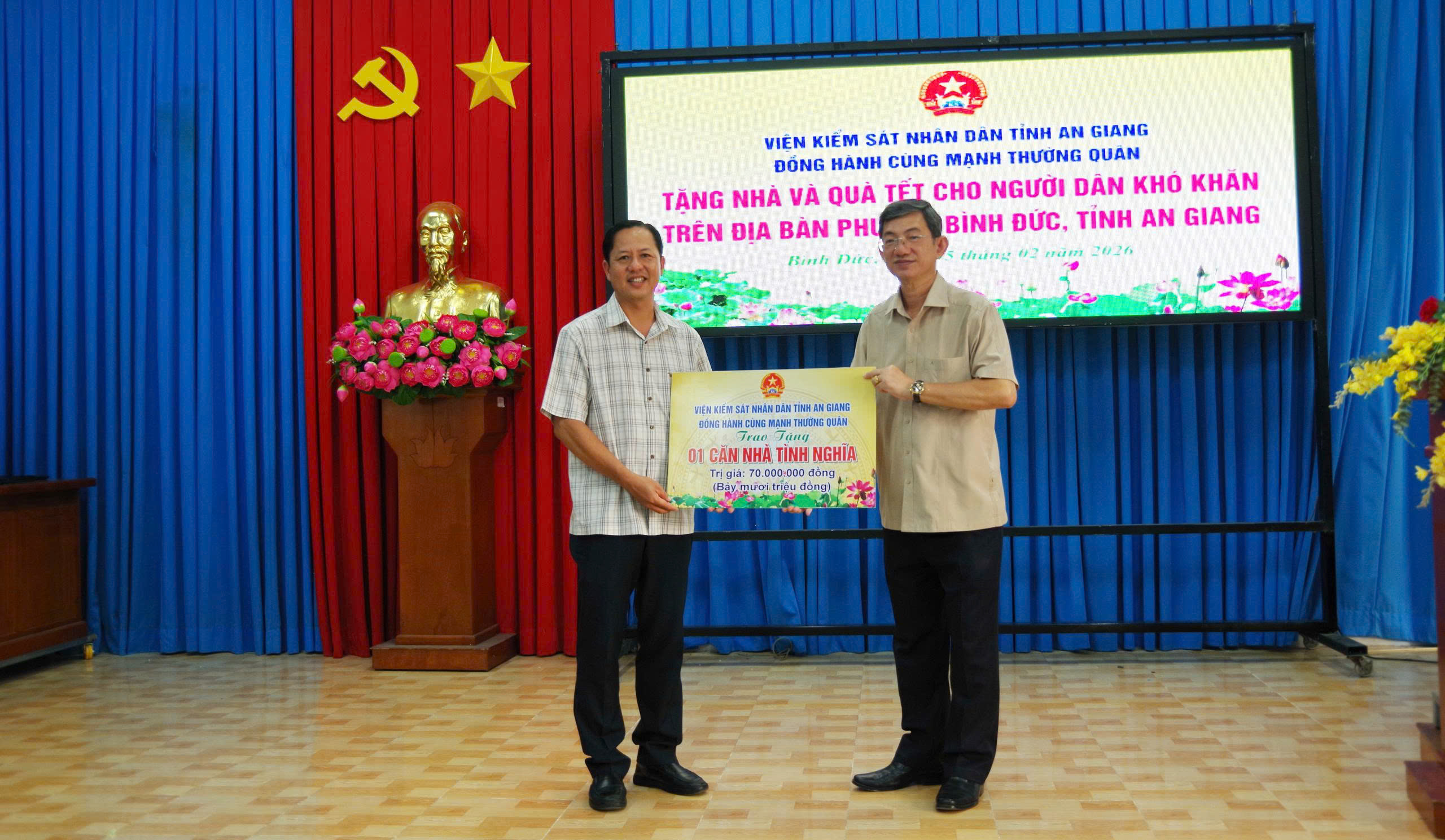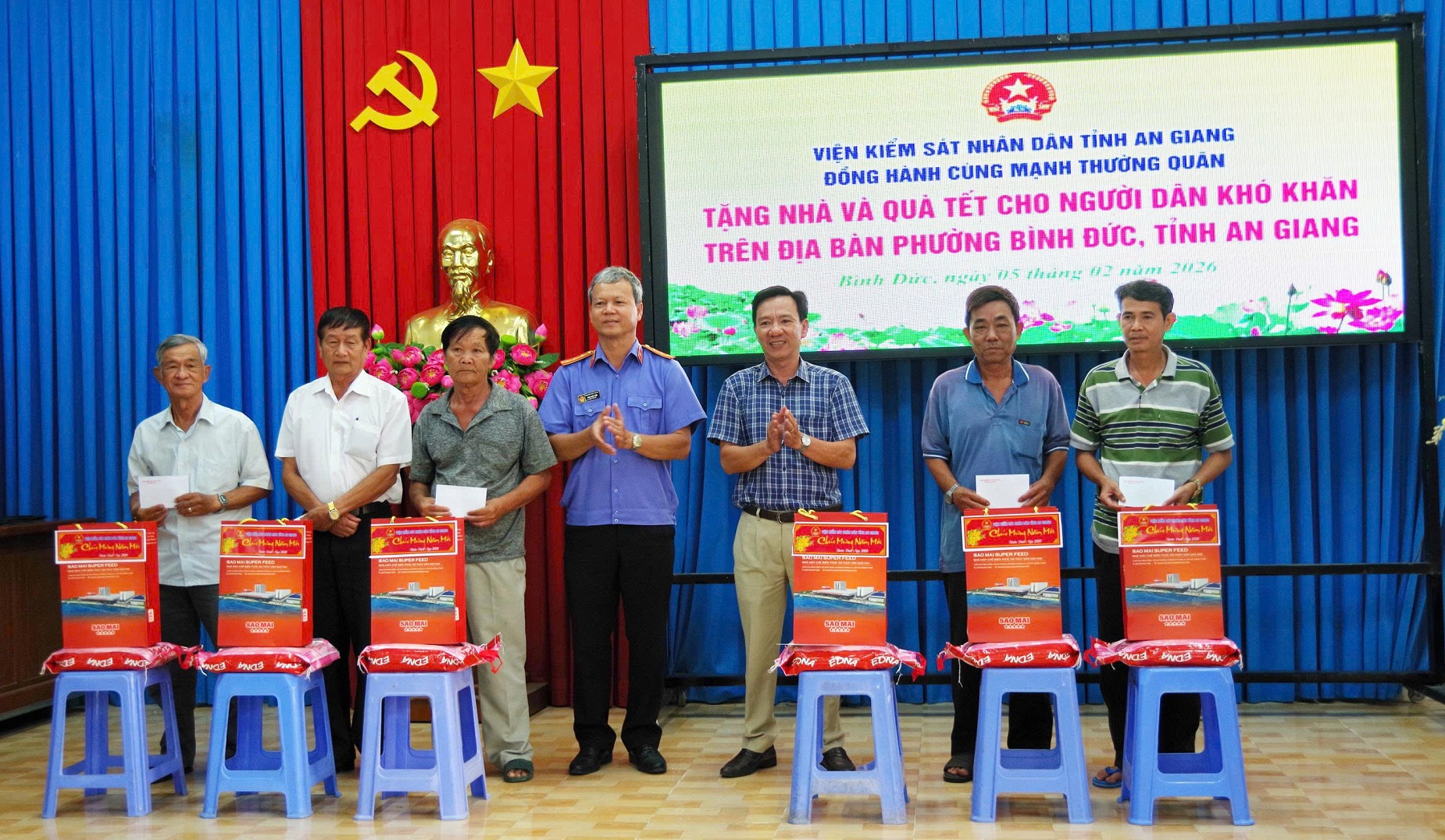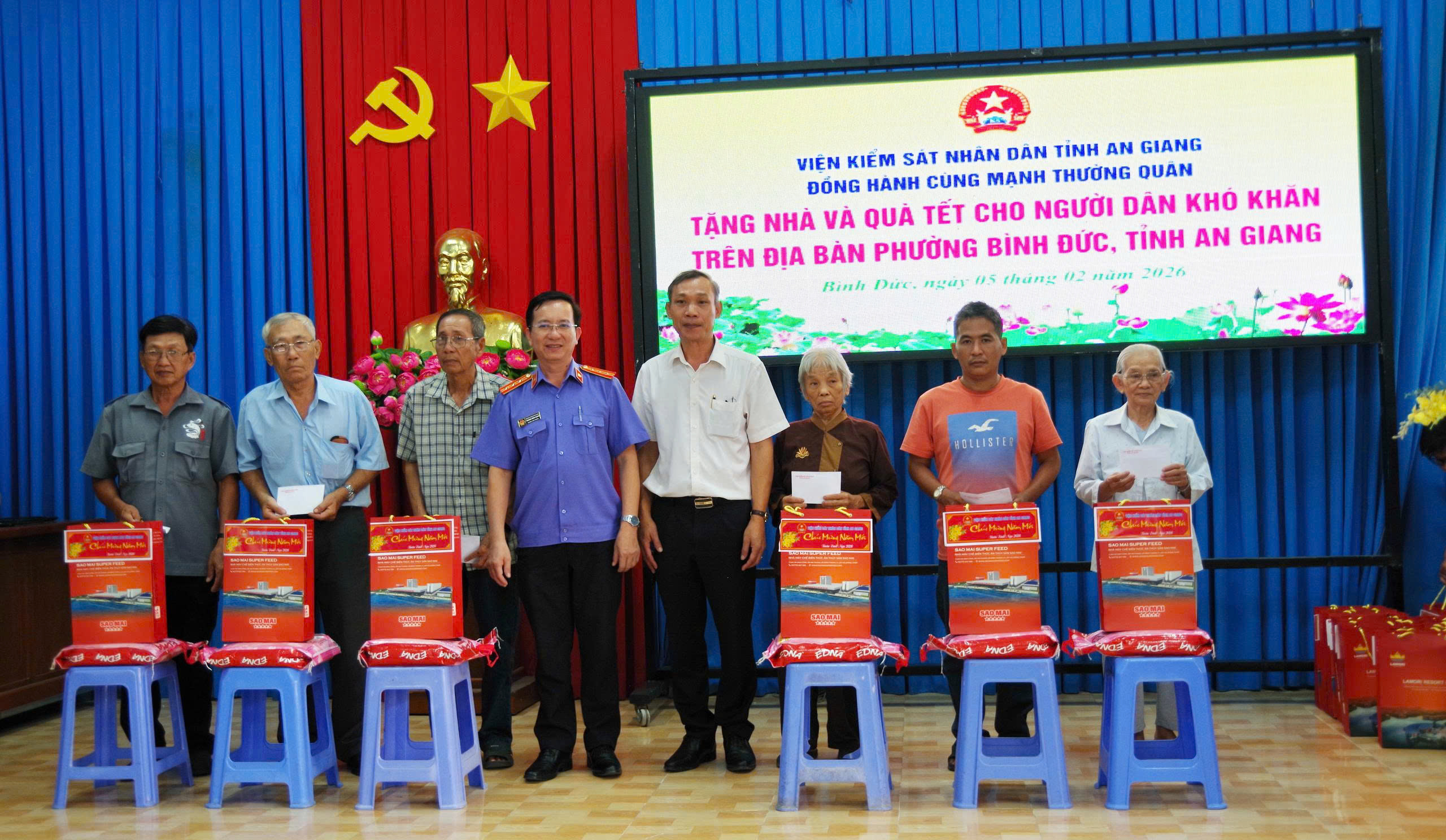 Nhân dịp Tết Nguyên đán Bính Ngọ năm 2026. Sáng ngày 05/02, Viện Kiểm sát nhân dân tỉnh An Giang phối hợp với Ủy ban MTTQ Việt Nam phường Bình Đức tổ chức chương trình trao quà Tết cho người có công có hoàn cảnh khó khăn. Đến dự có đồng chí Nguyễn Ngọc Phúc - Tỉnh ủy viên, Viện trưởng Viện kiểm sát nhân dân tỉnh An Giang.